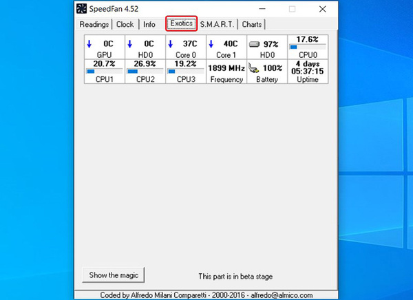 Bước 4: Những thông tin rõ hơn về nhiệt độ CPU sẽ được hiển thị tại Tab Exotics và có thể tự động điều chỉnh nhiệt độ cho phù hợp. Tab S.M.A.R.T những thông tin ổ cứng của máy tính.