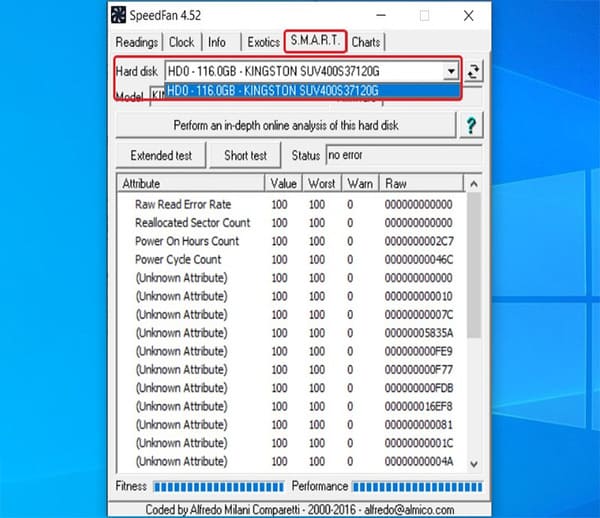 Xem thông tin ổ cứng tại tab S.M.A.R.T