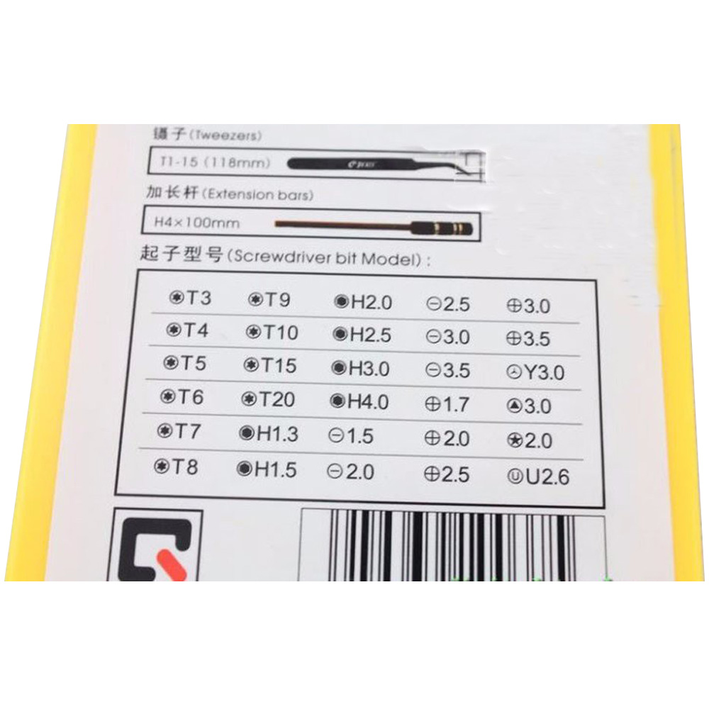 - Bộ dụng cụ bao gồm 1 đầu vặn vít, 1 nhíp và 30 đầu vít đủ loại: