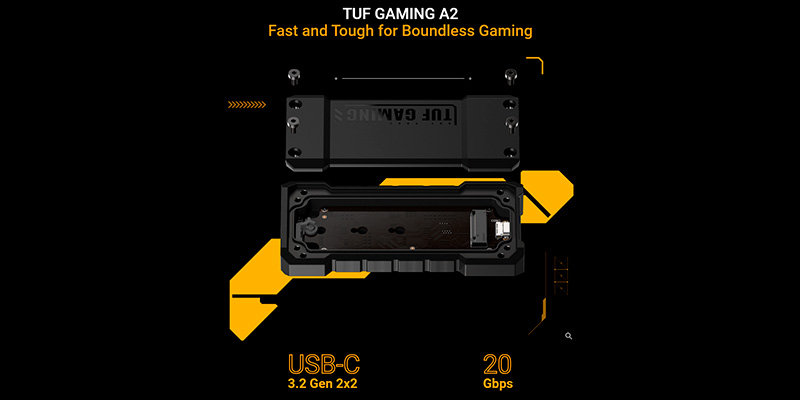 Box di động SSD M.2 NVMe 20Gbps Asus TUF Gaming A2 A2/BLK/G/AS được thiết kế dành riêng cho các game thủ và người dùng chuyên nghiệp cần tốc độ truyền tải dữ liệu vượt trội. Với chuẩn USB 3.2 Gen 2x2, sản phẩm này mang đến tốc độ truyền tải lên tới 20Gbps, giúp sao chép và truy xuất dữ liệu nhanh chóng. Đây là lựa chọn lý tưởng cho những ai cần một thiết bị lưu trữ hiệu suất cao, bền bỉ và an toàn.