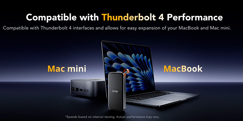 Hỗ trợ hoàn toàn với Thunderbolt 4, Lexar E750 là giải pháp mở rộng hiệu quả cho MacBook, Mac mini và các thiết bị cao cấp khác. Đồng thời, thiết bị còn tương thích ngược với Thunderbolt 3, USB 3.2, 3.1, 3.0 và cả 2.0, giúp bạn kết nối linh hoạt với nhiều thiết bị mà không lo giới hạn về cổng.