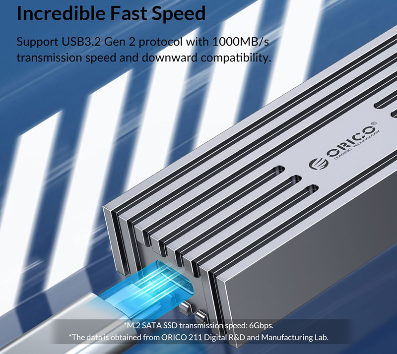 Box di động SSD M.2 PCIe NVMe to USB 3.2 Type-C 20Gbps Orico M233C3-G4 có thể đạt mức hiệu suất không thể tin được với băng thông cực khủng 20Gbps.