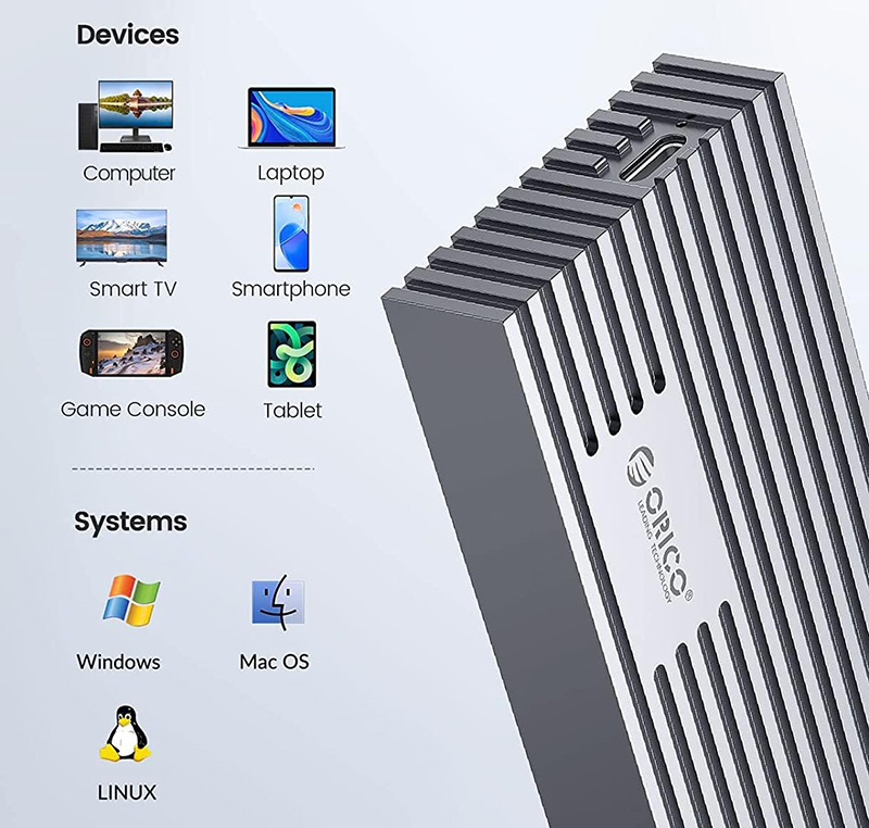 Box di động SSD M.2 PCIe NVMe to USB 3.2 Type-C 20Gbps Orico M233C3-G4 tương thích Windows, Mac, Linux.