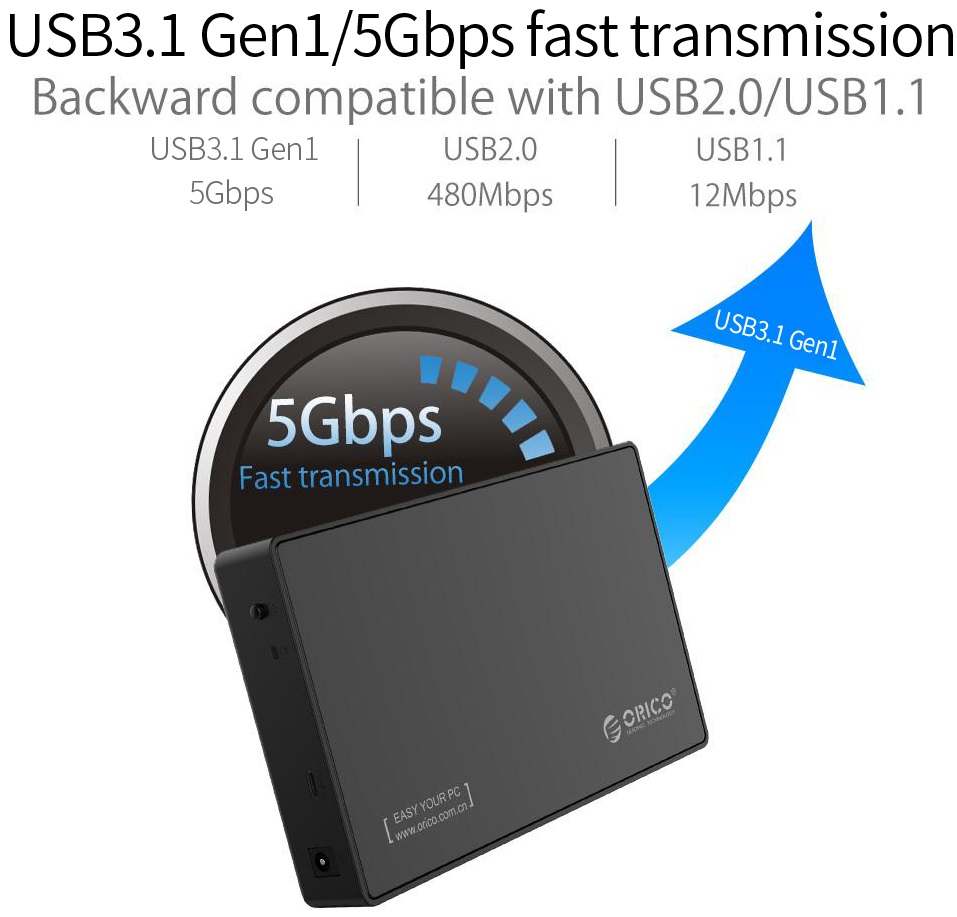 Chuẩn giao tiếp SuperSpeed 3.1 Type-C HDD Box Orico 3588C3 Series USB 3.0 được trang bị cổng giao tiếp USB 3.0 với băng thông 5Gbps, nhanh hơn 10 lần USB2.0 và tương thích với USB1.1 & USB1.0. Plug and Play, Tất cả bạn cần là cắm vào trong máy tính của bạn, không cần Driver, truy xuất cực nhanh Video, Hình ảnh, Âm nhạc và các tập tin bất kể ở nhà, văn phòng hoặc Studio với bất kỳ máy tính để bàn hoặc máy tính xách tay, giúp bạn dễ dàng lưu trữ và chuyển dữ liệu một cách nhanh nhất có thể, tiết kiệm rất nhiều thời gian cho bạn. |