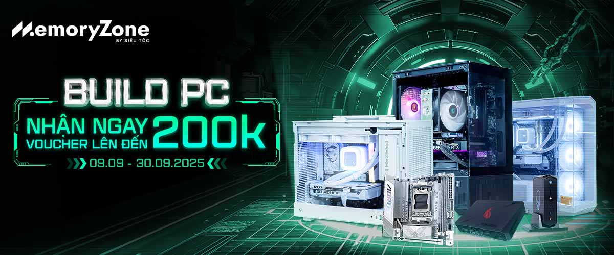Nhằm tri ân Quý khách hàng và mang đến cơ hội sở hữu thêm các phụ kiện công nghệ hiện đại với mức giá ưu đãi, MemoryZone gửi đến Quý khách chương trình khuyến mãi hấp dẫn BUILD PC NHẬN VOUCHER LÊN ĐẾN 200K từ ngày 09.09 đến 30.09.2025.