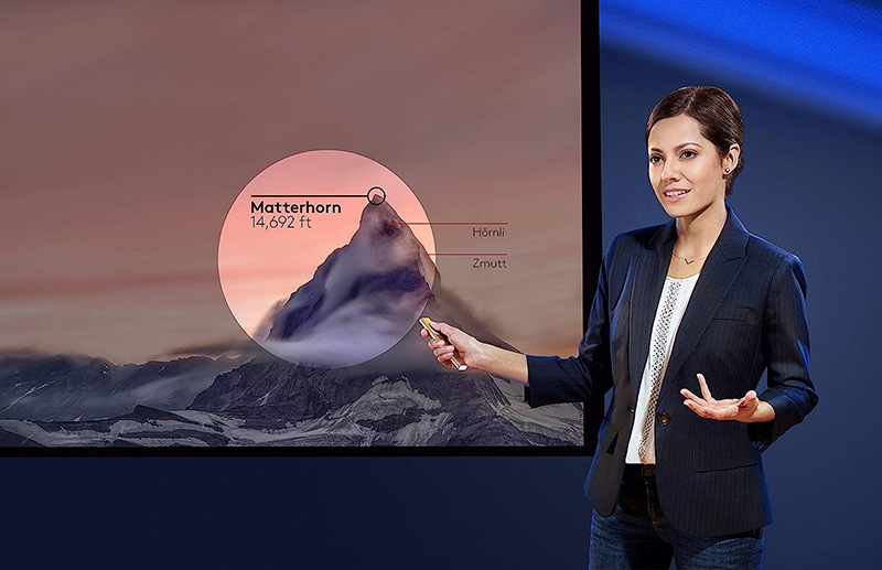 Phạm vi kết nối lên đến 30m Bút trình chiếu Logitech Spotlight cho phép người dùng di chuyển thoải mái khi thuyết trình mà không hề làm ảnh hưởng đến tốc độ truyền tín hiệu lên đến 30m |