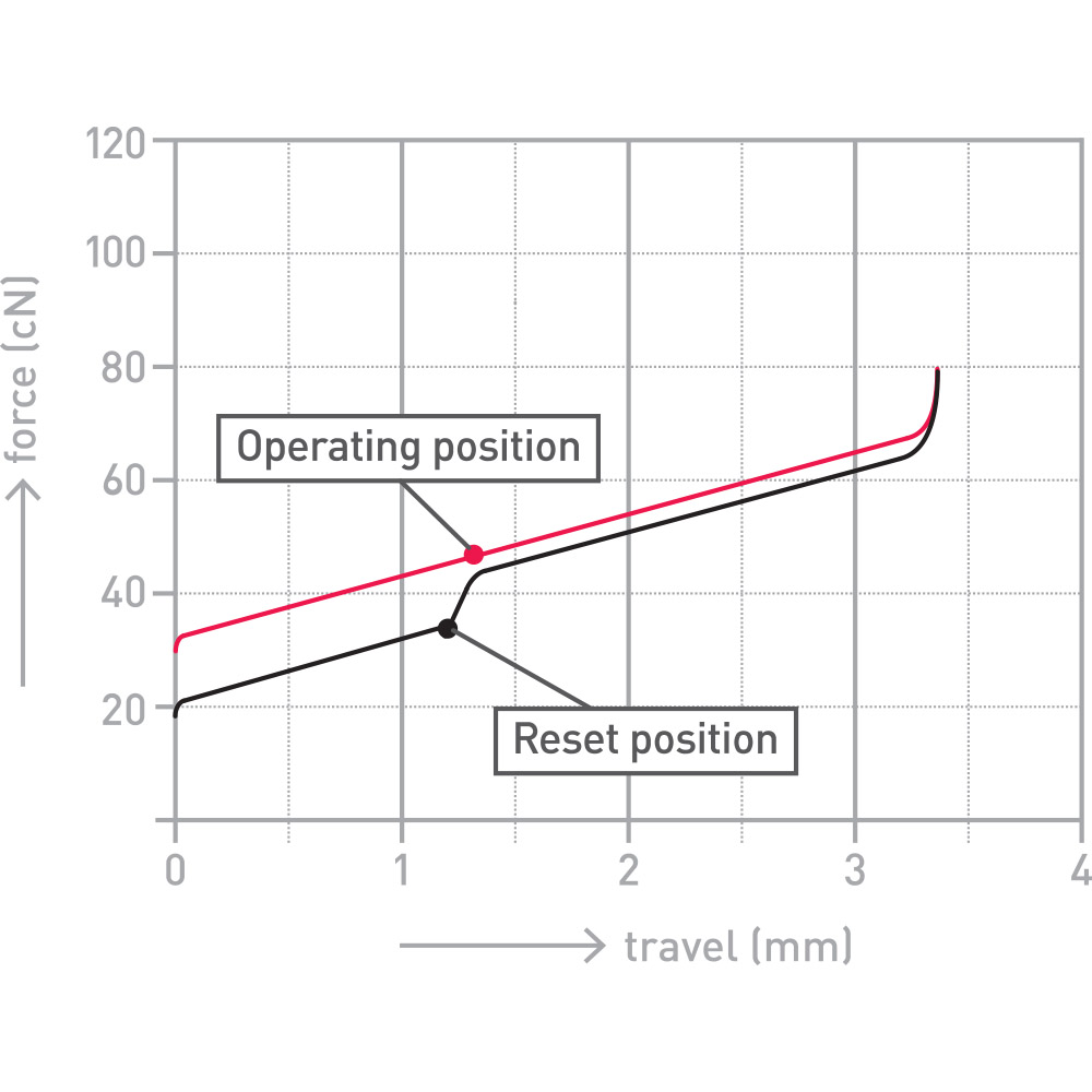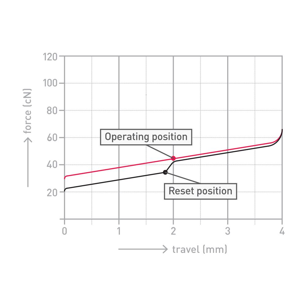 MX Red không có khấc giữa mỗi lần nhấn và đặc tính mà nhiều người lựa chọn loại Switch này là vì âm thanh khi bấm phím nhỏ không gây ảnh hưởng cho những người xung quanh, phù hợp cho công việc văn phòng gõ văn bản và các Game thủ yêu thích sự yên tĩnh.