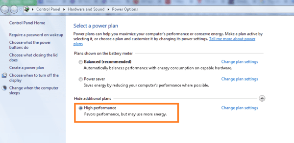 Hộp thoại Power Options xuất hiện → Chọn tiếp vào High performance