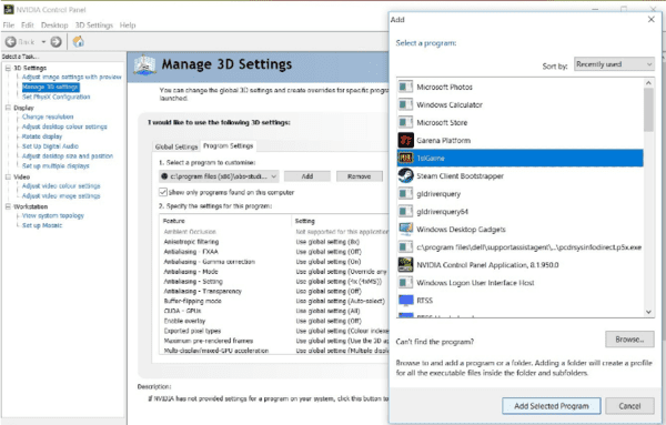 Sau đó, bạn chọn vào “Add” để chọn tựa game chạy card rời
