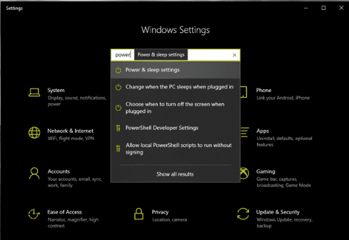 Để bật chế độ nguồn điện, bạn vào Settings → Chọn vào ô tìm kiếm và nhập từ khoá “power” → Nhấp vào Power & sleep settings. Sau đó, bạn chọn vào Additional power settings.