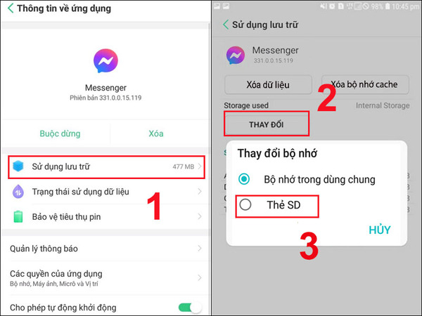 Bước 3: Một cửa sổ mới sẽ hiển thị các lựa chọn lưu trữ, bao gồm chuyển sang thẻ nhớ SD hoặc lưu trữ trong bộ nhớ trong. Chọn chuyển sang thẻ nhớ SD.