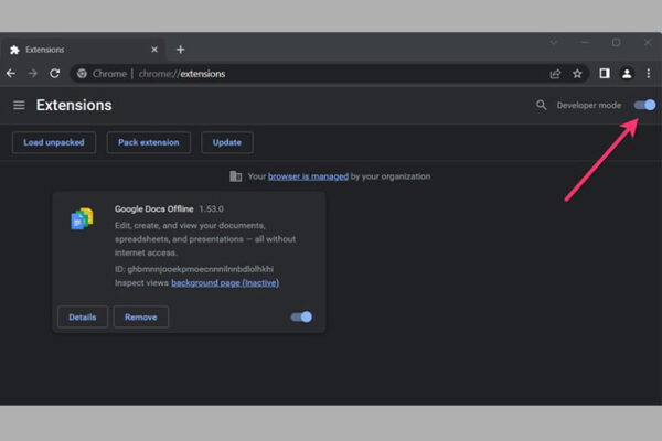 Bước 2: Bạn truy cập vào Chrome Extensions → Chọn kích hoạt chế độ Developer Mode.