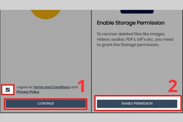 Bước 2: Sau khi tải xuống thành công ứng dụng, bạn mở lên và chọn vào Continue → Chọn tiếp Enable Permission (Cho phép quyền truy cập).
