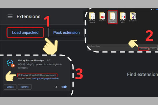 Chọn Load unpacked → History Remove Messages → Copy ID