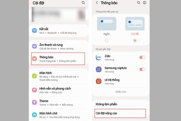 Vào Thông báo → Chọn Cài đặt nâng cao