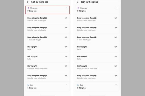 Bước 3: Tại Lịch sử thông báo, bạn có thể xem được tin nhắn trên Messenger đã bị thu hồi.