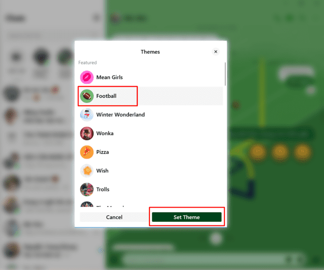 Sau khi thực hiện các bước trên, ảnh nền cuộc trò chuyện Messenger trên ứng dụng máy tính sẽ được cập nhật theo chủ đề bạn đã chọn.