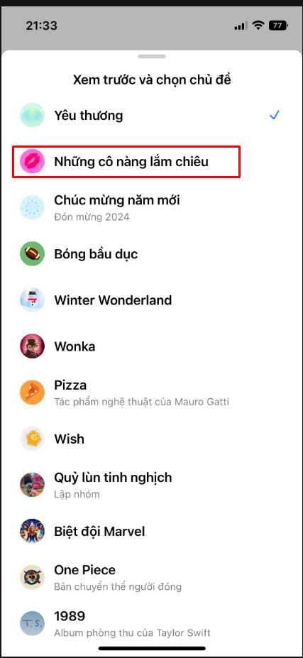 Bước 3: Danh sách chủ đề sẽ hiển thị và bạn có thể tuỳ chọn theo ý thích của mình. Sau đó nhấn “Lưu” để xác nhận thay đổi.