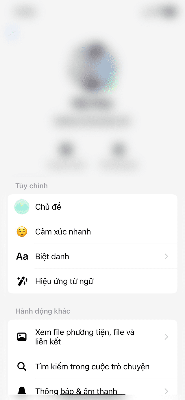 Bước 2: Nhấn vào tên người đang trò chuyện ở đầu màn hình. Tại mục tùy chỉnh, bạn chọn "Chủ đề".