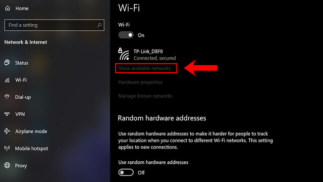 - Bước 2: Tiếp đến, bạn chọn vào mục WiFi → Chọn vào Show available networks để hiển thị các mạng không dây ở gần bạn.