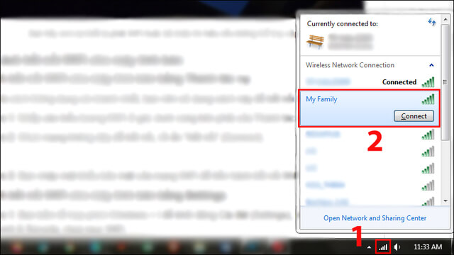 Bước 3: Bạn truy cập vào biểu tượng WiFi trên Thanh tác vụ và tìm đến mạng cần kết nối, sau đó nhập mật khẩu và ấn kết nối là được.