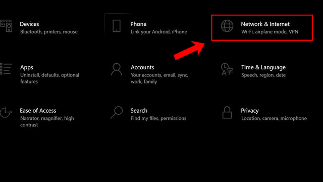 Bước 1: Mở công cụ Settings bằng cách nhấn tổ hợp phím Windows + I (hoặc có thể vào Search → Settings). Sau đó, bạn chọn vào Network & Internet.