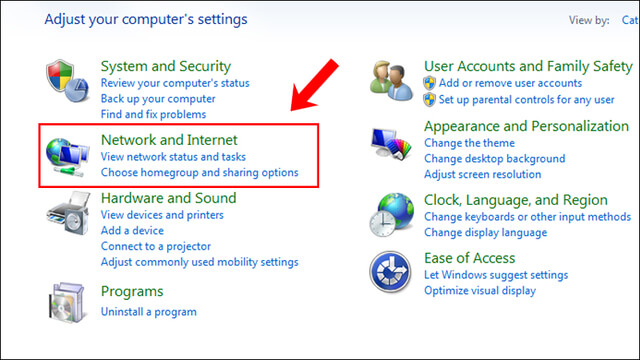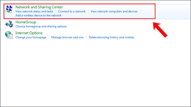 - Bước 2: Bạn chọn tiếp vào Network and Sharing Center.