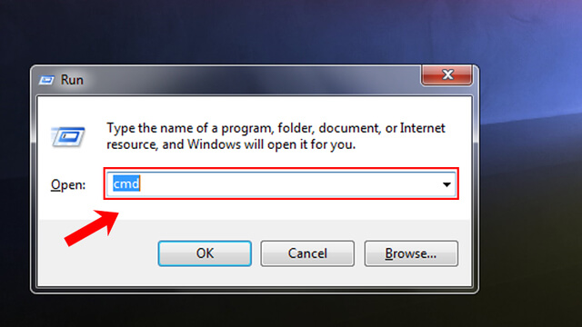 Bước 1: Để mở Command Prompt, bạn nhấn tổ hợp phím Windows + R để mở hộp thoại Run, sau đó nhập "cmd" và nhấn Enter để khởi động.