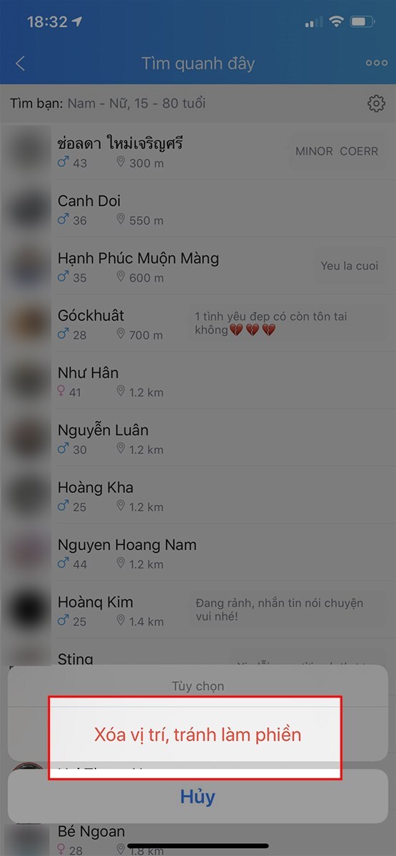 Bước 3: Nhấn chọn biểu tượng ba dấu chấm ở góc trên bên phải của màn hình, sau đó bạn chọn tiếp "Xóa Vị Trí, Tránh Làm Phiền".