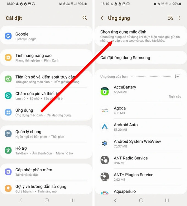 Nếu bạn không thể gỡ bỏ ứng dụng theo cách làm thông thường (trường hợp này hay xảy ra với những phiên bản Android cũ hơn) thì hãy truy cập vào Cài đặt → Tìm đến “Ứng dụng” → Chọn tiếp đến “Thiết lập ứng dụng mặc định” → Nhấn chọn "Trang chủ One UI" là xong.