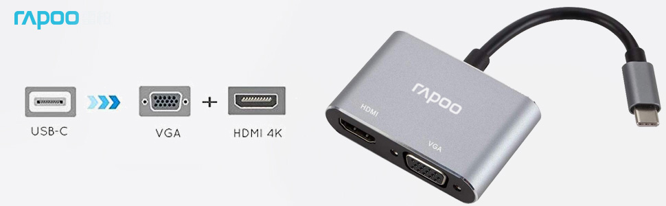 Cáp chuyển USB Type-C to HDMI và VGA Rapoo XD10V