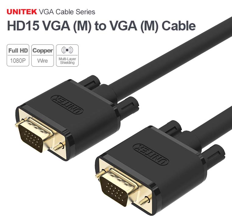 Hỗ trợ Video chất lượng cao Cáp chuyển VGA to VGA 1.5m Unitek Y-C503G hỗ trợ độ phân giải Full HD (1920 × 1080), cho chất lượng hình ảnh cùng âm thanh cực kỳ trung thực.