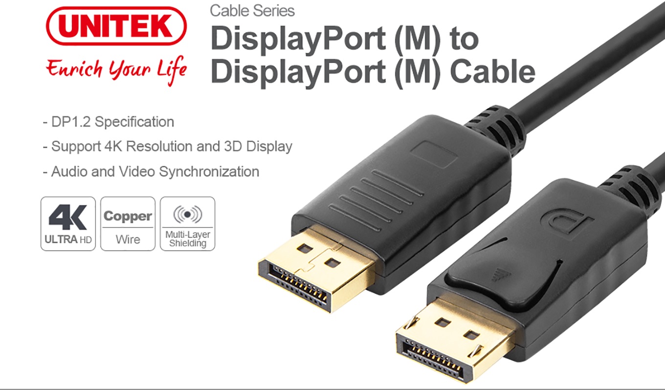 Hỗ trợ Video chất lượng cao nhất Cáp DisplayPort Unitek Y-C608BK hỗ trợ độ phân giải 4K (3840*2160 60Hz), Video 3D với chất lượng cao nhất, cho chất lượng âm thanh cực kỳ trung thực. |