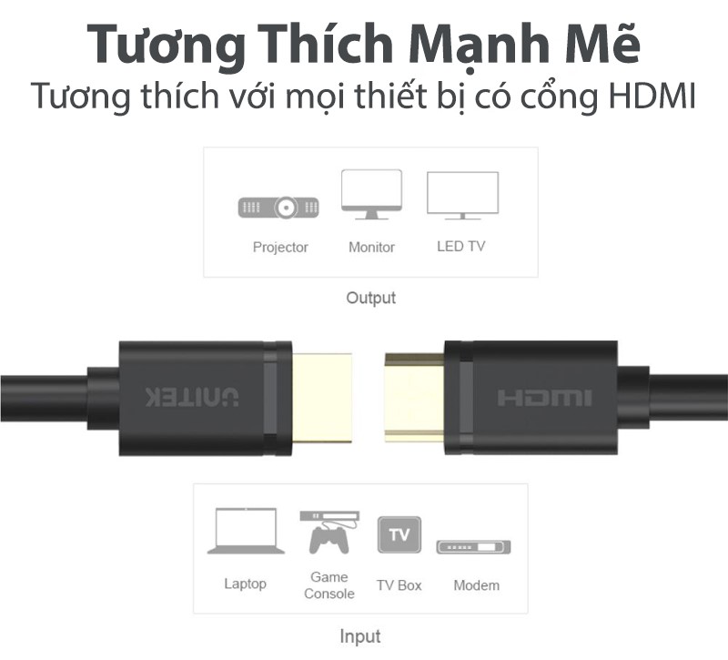 Tương thích cực tốt Cáp HDMI Unitek Y-C138M tương thích với tất cả các thiết bị sử dụng cổng HDMI như máy tính PC, máy tính xách tay, Set-Top box, màn hình, ti vi, máy chiếu, máy nghe nhạc, Xbox, PS4