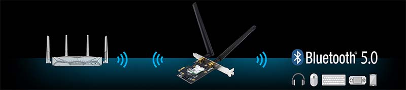 Công nghệ Bluetooth 5.0 ASUS PCE-AX3000 nâng cấp lên công nghệ Bluetooth 5.0 và để bạn tận hưởng vô vàn tiện nghi với kết nối không dây tới nhiều loại thiết bị như loa, tai nghe và tay cầm chơi game với tốc độ truyền nhanh hơn gấp 2 lần - và phạm vi phủ sóng xa hơn tới 4 lần. |