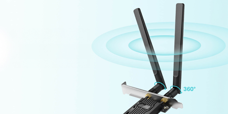 Card mạng TP-Link Archer TX20E WiFi 6 sở hữu 2 ăng-ten độ lợi cao giúp tăng cường tín hiệu mạnh giúp mở rộng đáng kể vùng kết nối với Wi-Fi hiện có, mang đến trải nghiệm trực tuyến mượt mà, nhanh chóng từ khoảng cách xa hơn.