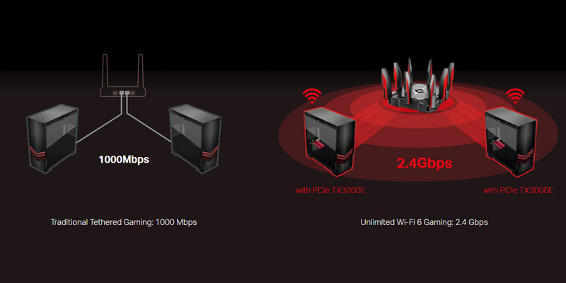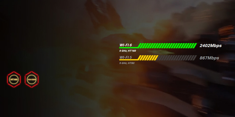 1024-QAM và băng thông 160 MHz mang đến sự mạnh mẽ, để khai thác tối đa tiềm năng của bộ định tuyến Wi-Fi 6 của bạn. Đạt được tốc độ nhanh hơn gấp 3 lần so với Wi-Fi AC tiêu chuẩn giúp thúc đẩy PC của bạn đạt hiệu suất cao nhất để quá trình thiết lập của bạn bắt kịp với của bạn kỹ năng đáng kinh ngạc.