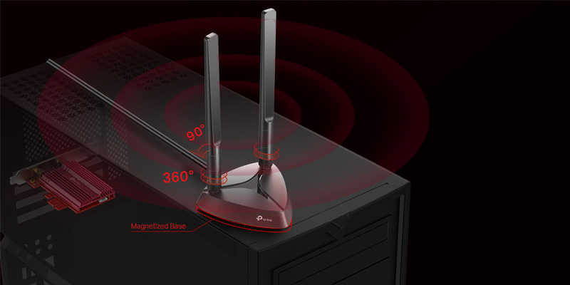 Hai ăng-ten đa hướng và hiệu suất cao có đế từ hóa giúp mở rộng khả năng thu sóng Wi-Fi hiện có của bạn, cho phép bạn chơi game mọi lúc, mọi nơi. Đặt đế ăng-ten từ hóa ở bất kỳ đâu trên máy tính để bàn của bạn để tìm vị trí tối ưu để thu tín hiệu.