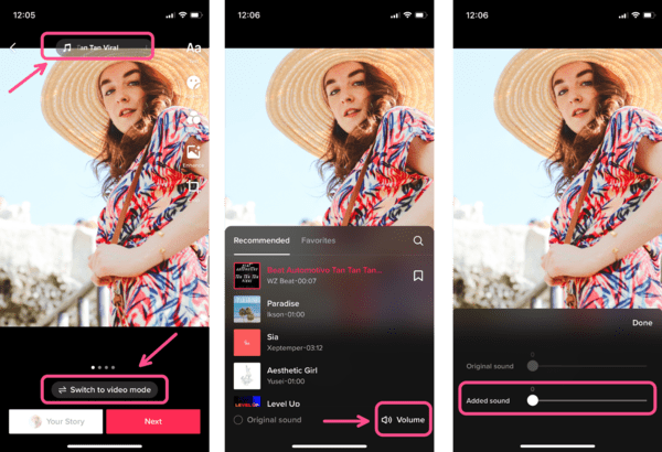 Tiktok sẽ tự động chọn âm thanh đi kèm với băng chuyền hình ảnh, ngay cả khi bạn đang ở Chế độ ảnh. Không giống như việc đăng một bức ảnh duy nhất, hiện tại sẽ không có cách nào để xóa âm thanh này, bạn có thể duyệt qua các âm thanh sẵn có và chọn âm thanh mà mình thích thay vì âm thanh được đề xuất.