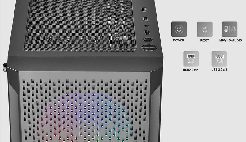 Nhiều cổng kết nối Case máy tính Antec NX290 được trang bị hầu như đầy đủ các cổng kết nối mở rộng bao gồm USB 3.0, 2.0 Type-A, cổng HD Audio, nút nguồn. Bạn sẽ không cần phải vòng lại phía sau máy để cắm thiết bị của mình.