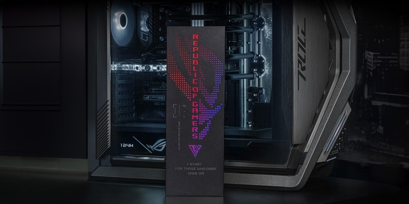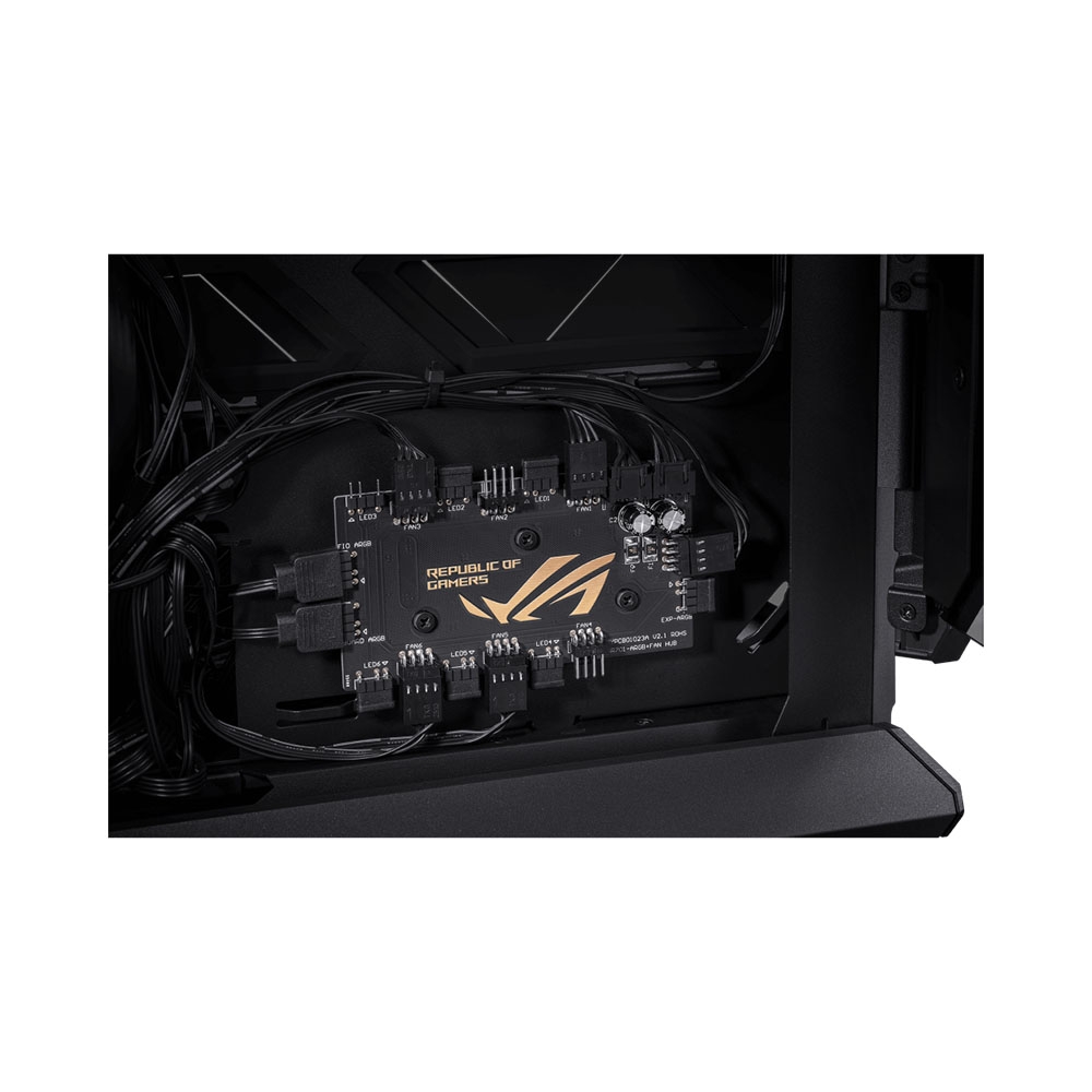 Khung máy này có bảng điều khiển ánh sáng ARGB bên trong giúp hiển thị các linh kiện bên trong ROG cho bất kỳ ai nhìn vào và nó có thể được hiển thị ở bên ngoài nếu nhà chế tạo muốn nhường chỗ cho quạt hoặc SSD ở vị trí đó.