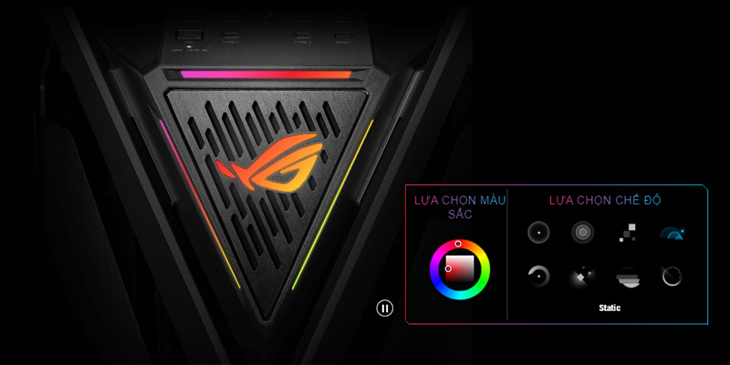 Case máy tính Asus ROG STRIX GR701 HYPERION Black nổi bật với đèn LED RGB được tích hợp ở bảng điều khiển phía trước với khả năng hiển thị hàng triệu màu tạo cảm giác đặc biệt cho không gian của bạn. Ngoài ra, dải đèn LED còn có thể được tùy chỉnh bằng nút điều khiển chuyên dụng hoặc bằng phần mềm Aura