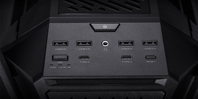 Case máy tính Asus ROG STRIX GR701 HYPERION Black thiết kế khe hút gió phía trước có thể cung cấp lượng gió dồi dào để đạt được sự cân bằng nhiệt độ phù hợp cho hệ thống và card đồ họa của bạn. Điều này tích hợp chặt chẽ thành một diện mạo mới táo bạo với các đặc điểm như huy hiệu hình kim cương đặc biệt ở mặt trước, được đóng dấu logo ROG nổi tiếng và được bao quanh bởi các đường gạch chéo.