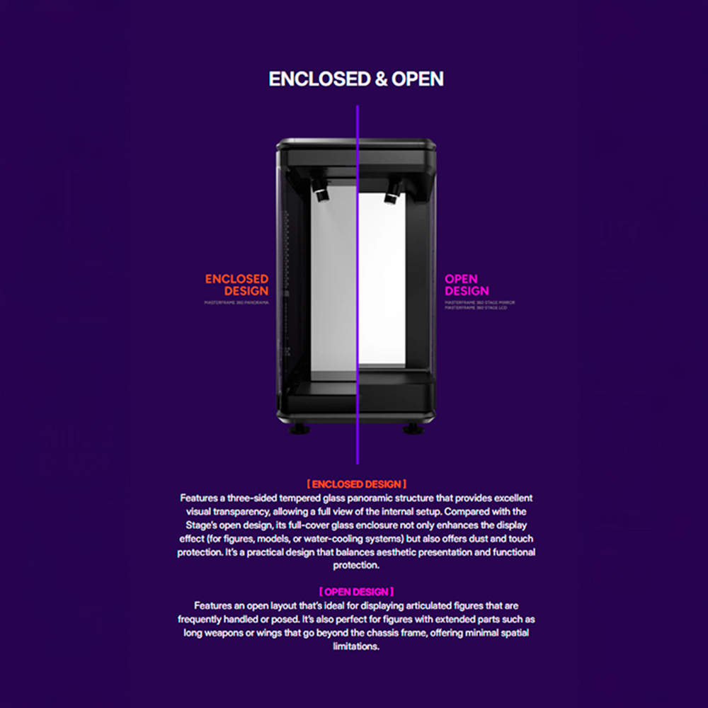 Hoàn toàn không cần mua thêm phụ kiện! MasterFrame 360 Panorama đã được thiết kế sẵn 3.5 khe mở rộng để dựng dọc VGA và đặc biệt tặng kèm cáp Riser PCIe 5.0 siêu tốc. Bạn có thể dễ dàng lắp đặt để phô diễn trọn vẹn thiết kế tản nhiệt cực ngầu của card đồ họa ngay sát mặt kính cường lực.