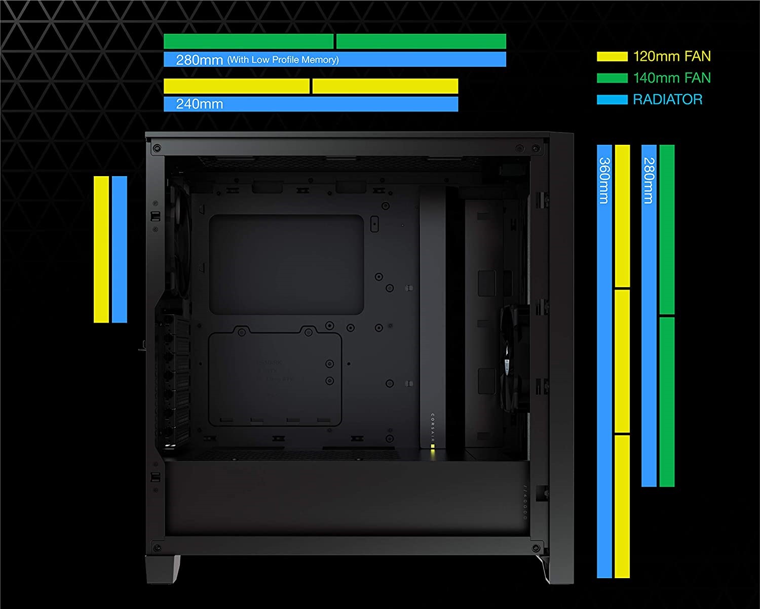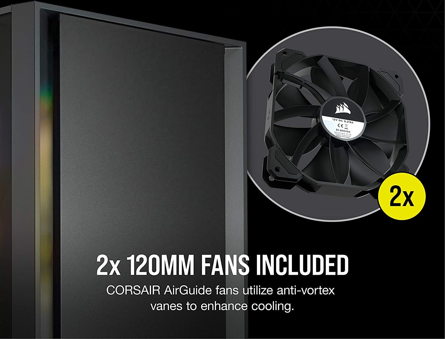 Tăng cường khả năng làm mát Được trang bị hai Fan CORSAIR 120mm có công nghệ AirGuide với cánh gạt chống xoáy để tập trung luồng không khí và tăng cường khả năng làm mát. |