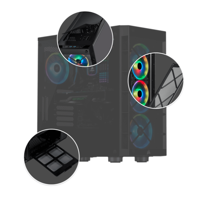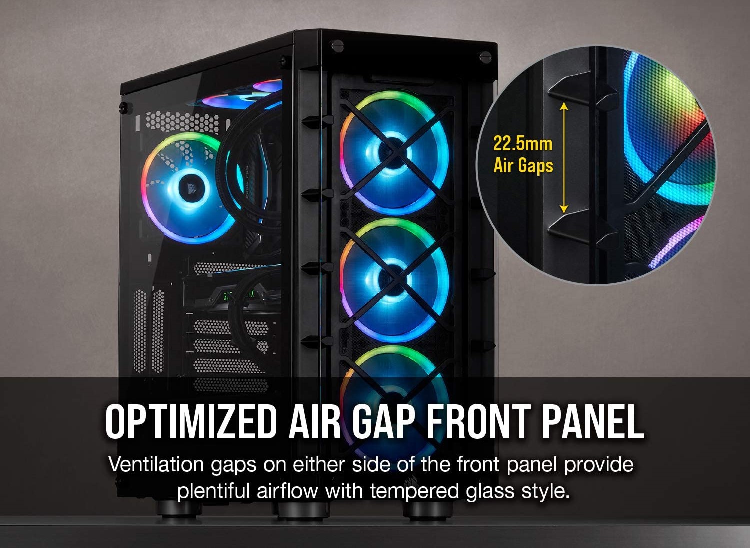 |  | Tăng cường khả năng làm mát Được trang bị ba Fan 120mm với tốc độ quay 1500 RPM và 16 đèn nền có thể tùy chỉnh thông qua phần mềm iCUE. |