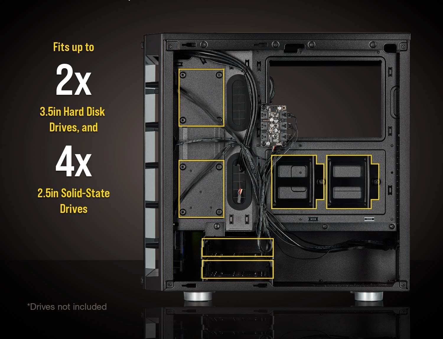 | Khả năng lưu trữ Phù hợp với tối đa 2x 2,5 inch SSD và 4x 3,5 inch HDD |  |