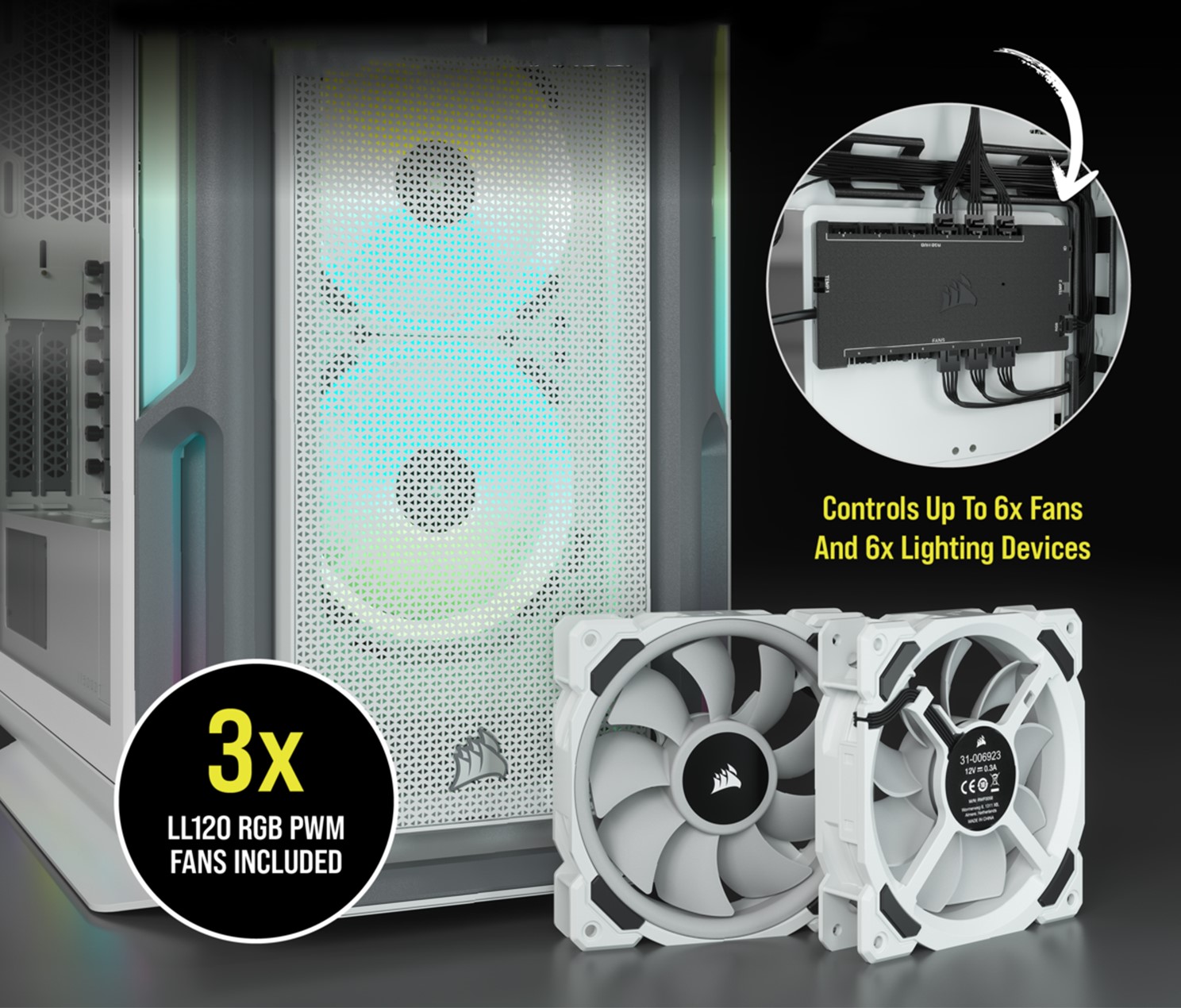 Tăng cường khả năng làm mát Case Corsair 5000T RGB TG được trang bị ba Fan CORSAIR LL120 RGB với 16 đèn LED RGB có thể tùy chỉnh riêng cho mỗi Fan cùng khả năng điều khiển thông qua PWM để tập trung luồng không khí và tăng cường khả năng làm mát. |