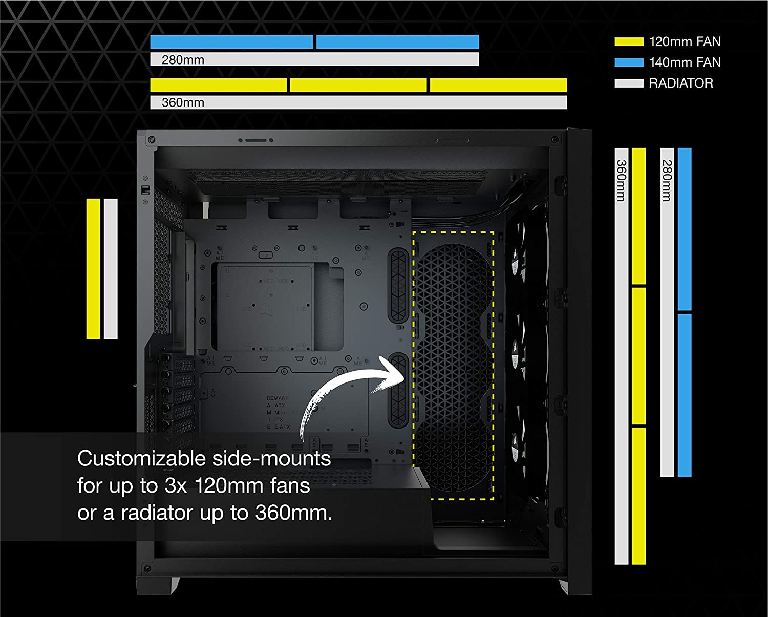 Khả năng không giới hạn 5000X RGB có tính linh hoạt đáng kinh ngạc khi làm mát. Với tối đa mười Fan 120mm, ba Fan RGB đi kèm với công nghệ AirGuide và ba vị trí tản nhiệt 360mm riêng biệt, tăng khả năng làm mát cho Case của bạn |