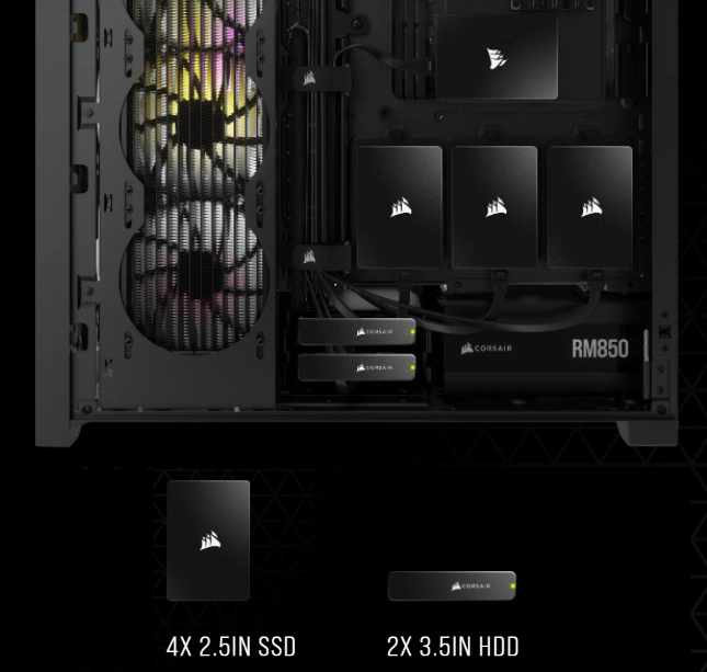 Tăng cường khả năng làm mát Được trang bị ba Fan CORSAIR 120mm có công nghệ AirGuide với cánh gạt chống xoáy để tập trung luồng không khí và tăng cường khả năng làm mát. |